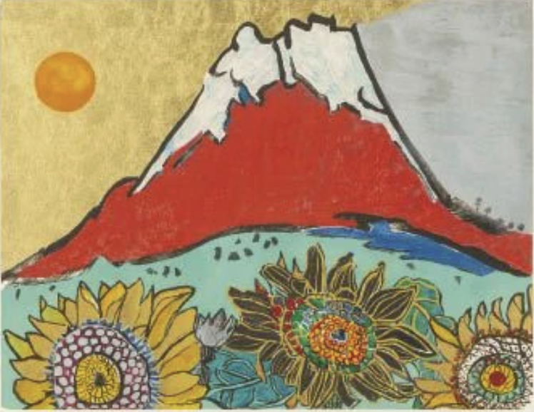 その富士山の絵は見る人に元気や勇気を与えてくれる吉兆の作品として大変人気が高く、一度見たら忘れられない強烈な印象を残します。